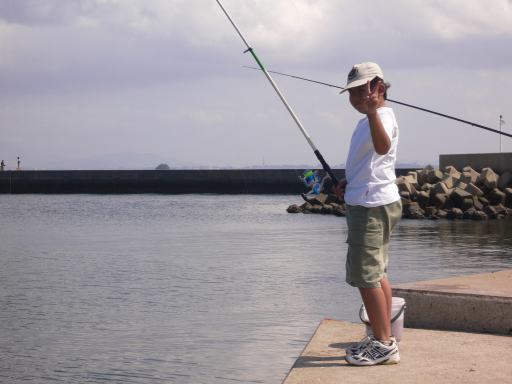 9月18日 ![]() 今日は今回メインの志賀島での釣り。ここでは2回目。お天気もめぐま れて(のぶさんいわく釣りは曇り空や小雨がいいらしい)帽子はかぶっ ていたのにノースリーブという無謀なσ(o^_^o)は肩が季節はずれの日 焼けでヒリヒリでした。 今回もおじいさん二人組のそばにじんどって釣り開始。何を話している やら。私はマイペースでさびきです。なかなか釣れないので飽きてき たころ小さな男の子3人をつれた家族の一団。その家族はみんなでさ びき。お母さんがすごく上手でさびきで小さなアジやいわしを釣ってい るのをみるや今までの浮き釣りを私に渡して私のさびきを。はい、釣っ てね。 |