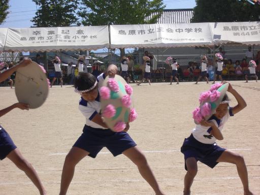 9月25日 今日は運動会。お天気にもめぐまれていい運動会日よりでした。夏休み 休むことなく皆勤賞で練習した金管バンドのアルトホルンの初のお披露 目でした。 かけっこはぶっちぎりのビリでしたけど障害物は最後に残ったボールで 運に恵まれて戻ることなくそのままゴール。なんと2等賞!生まれてはじ めての快挙です。 PAN!( ^-^)∠※.。・:*:・゚`☆、。・:*:・゚`★ 応援合戦は赤組応援団の5,6年生に4年生から男女一人ずつに参加 に手を上げてじゃんけんで勝ち抜いてはれて応援団になり毎日放課後 遅くまで頑張って練習したかいあってとても上手でした。 今年の踊りは花笠音頭。腰もよく落ちて切れもよく上手に踊ってました。 σ(o^_^o)の子、おなかにいるときから踊っていたのでダンスは大好きで す(=^m^=) |